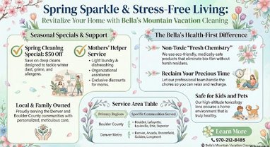 Spring is here, and at Bellas Mountain Vacation Cleaning, we are thrilled to help Boulder County homes sparkle!